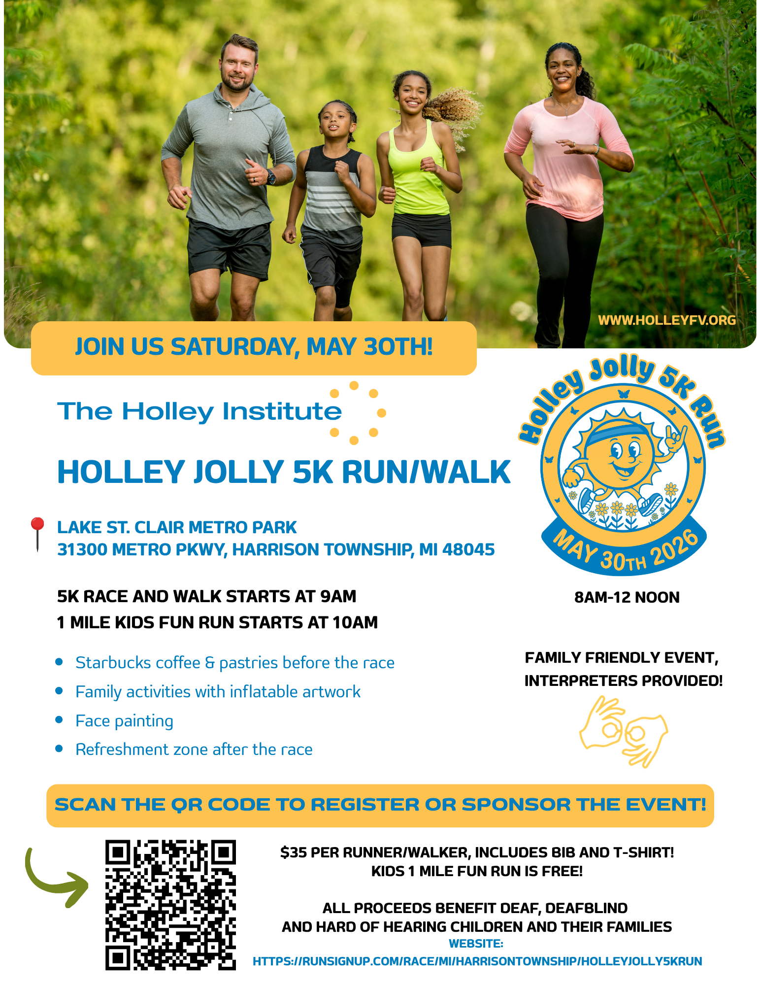Event Details: Join us at Lake St. Clair Metro Park (Harrison Twp, MI) for the Holley Institute's 5K fundraiser. This family-friendly event is open to everyone whether you are a trained runner or are looking to walk with a group.