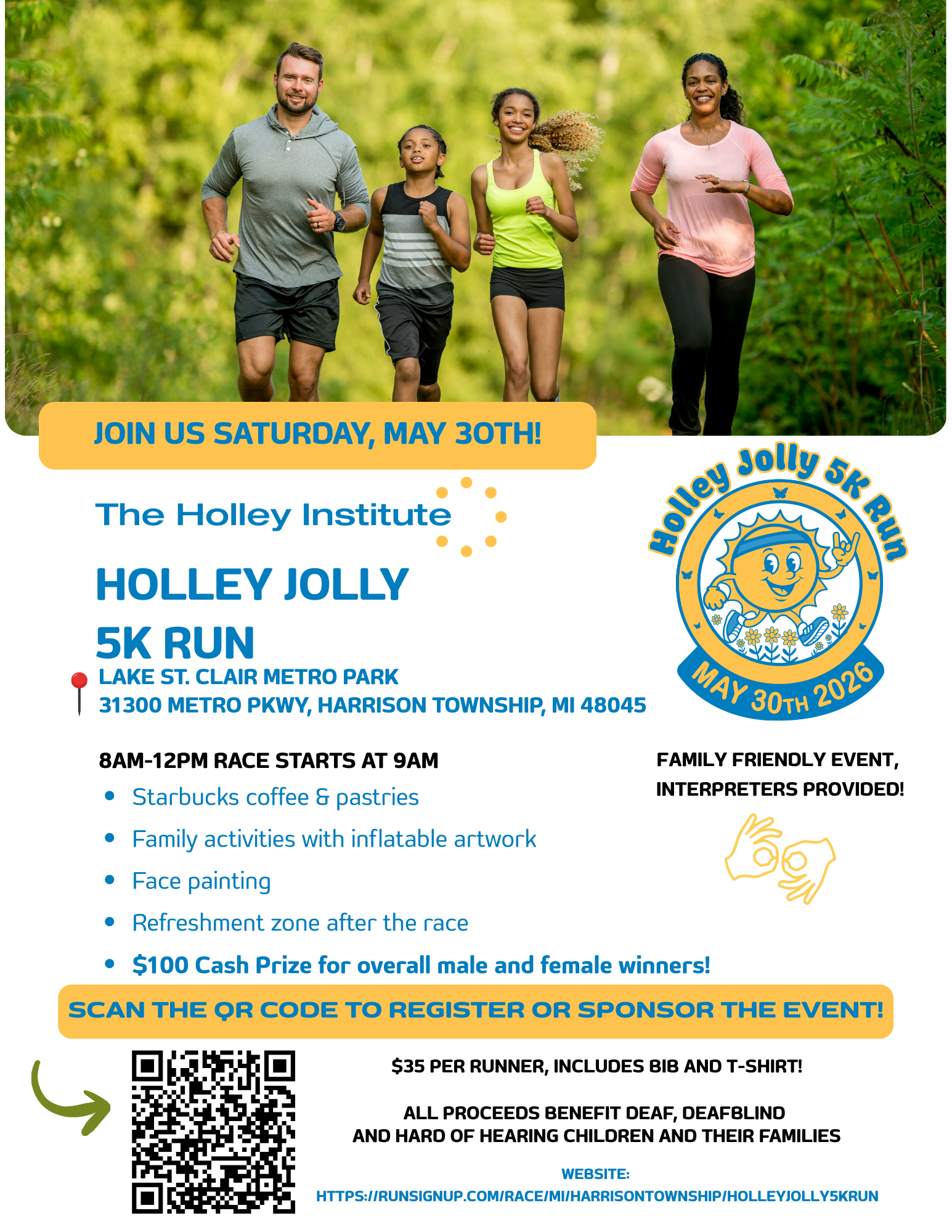 Event Details: Join us at Lake St. Clair Metro Park (Harrison Twp, MI) for the Holley Institute's 5K fundraiser. This family-friendly event is open to everyone whether you are a trained runner or are looking to walk with a group.