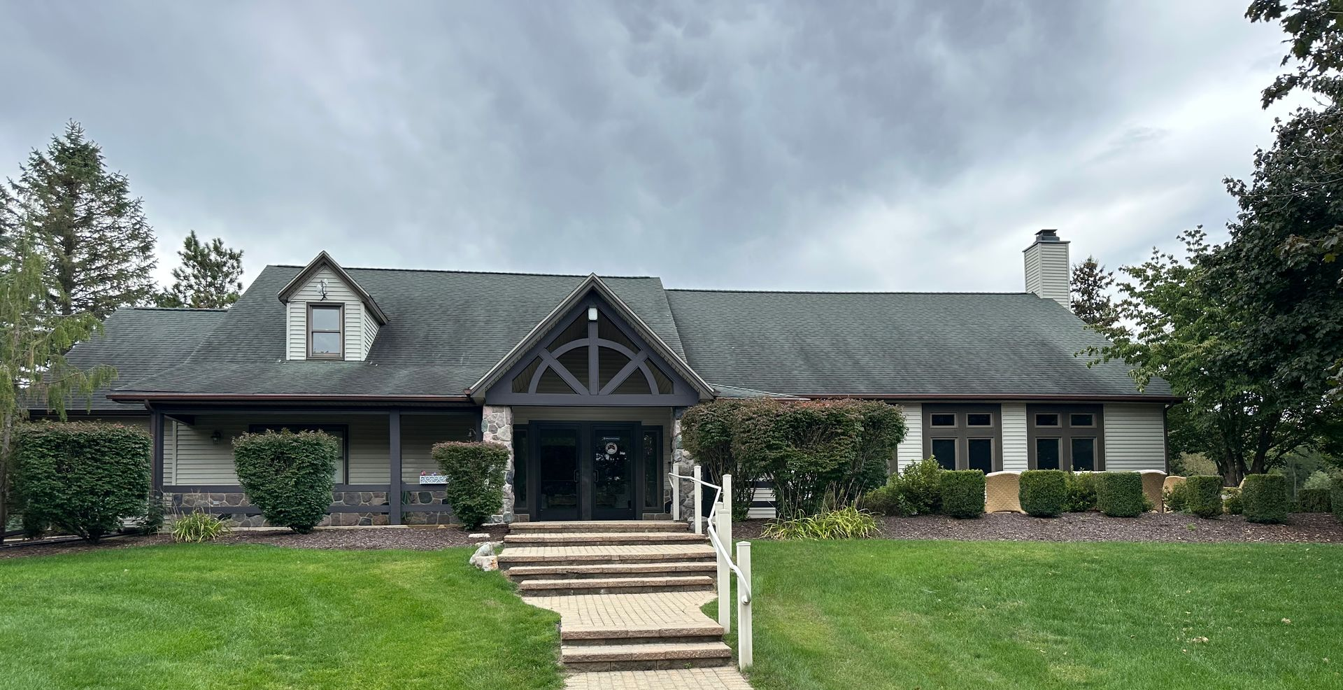The Village Commons is our large gathering space — perfect for conferences, workshops, community events, and group dining. The building includes an event space equipped with a projector and screen, as well as a spacious dining room with tables and seating.